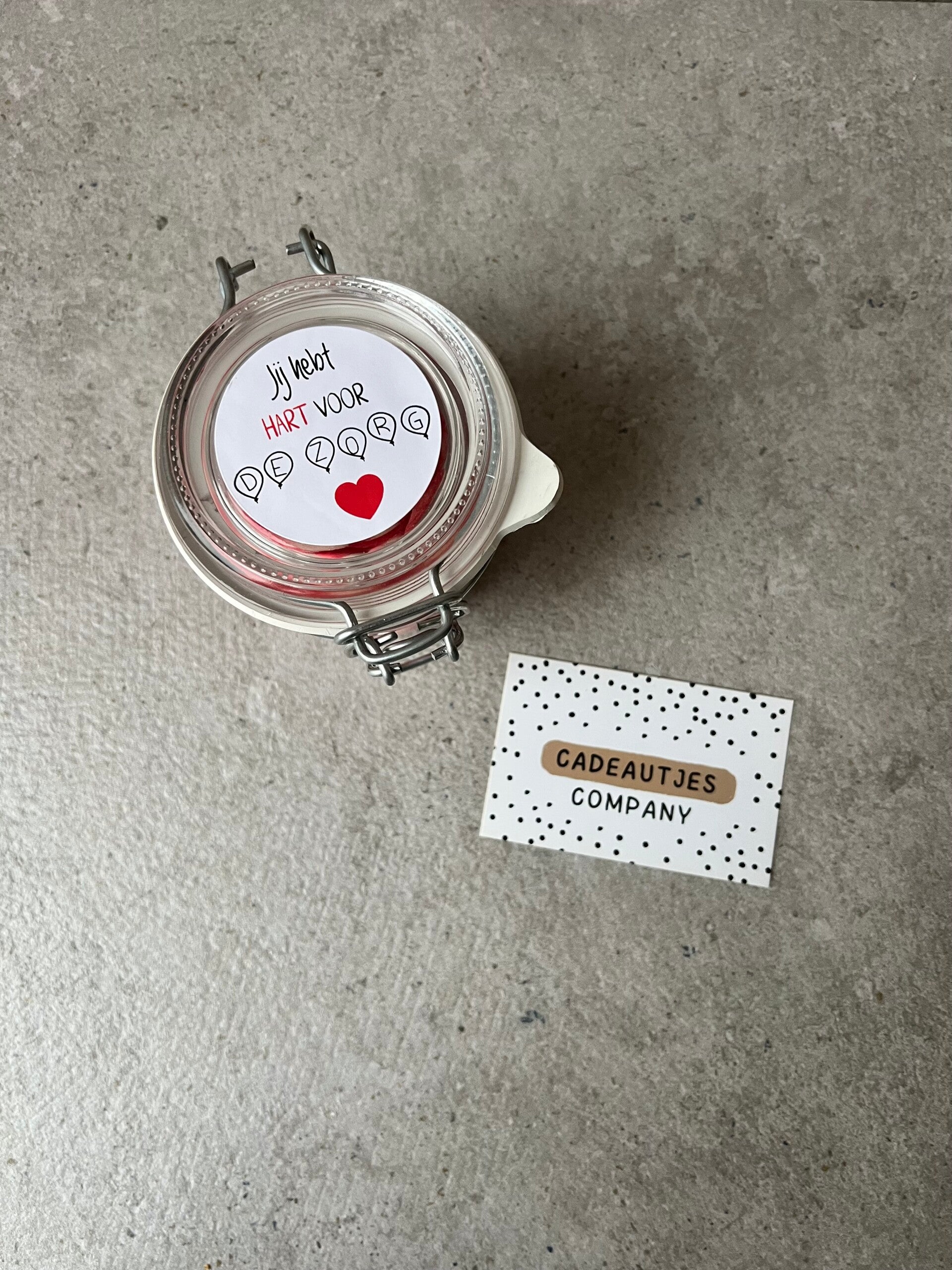 Glazen potje met snoep hartjes